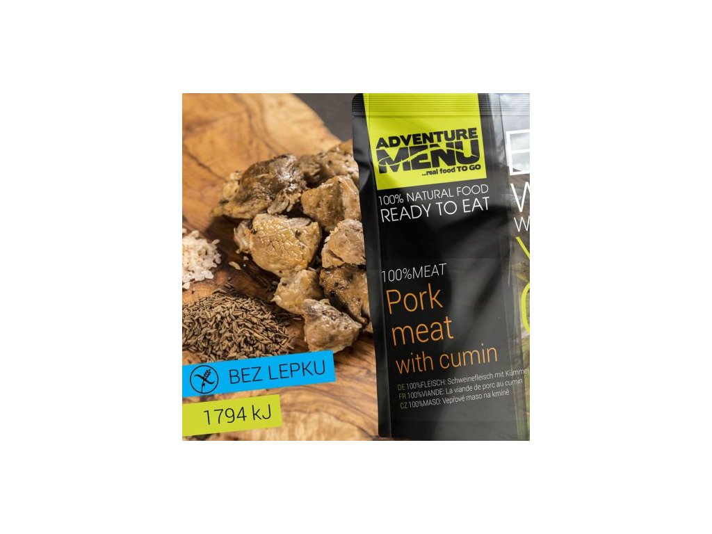 Libové kousky vepřového masa ve vlastní šťávě pečené v páře na kmínu. Jedno balení obsahuje maso o hmotnosti 300g (v syrovém stavu). Díky pečení v páře došlo ke zredukování přebytečné vody a výsledkem je velmi nízká hmotnost 200g při zachování šťavnatosti samotného masa.