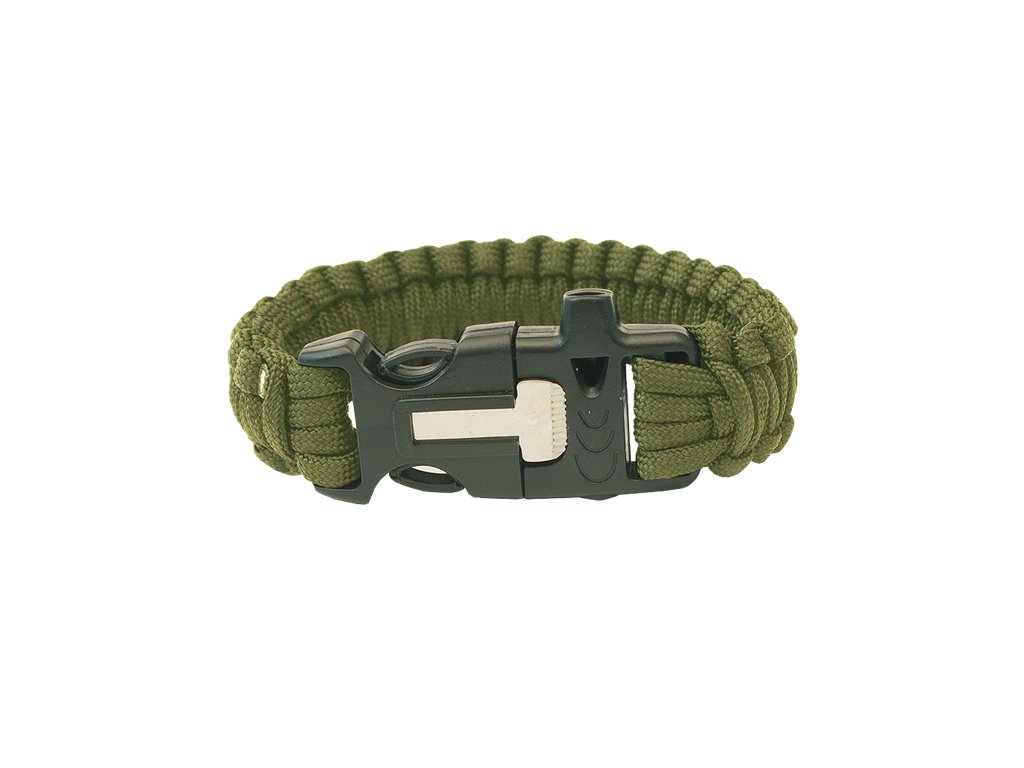 Paracord náramek je upletený z několika metrů kvalitní nylonové šňůry, jejíž nosnost je až 249 kg. Náramek můžete v případě potřeby rozmotat a šňůru použít ke stavbě přístřešku, nouzové slaňování nebo jako náhradní tkaničky do bot.