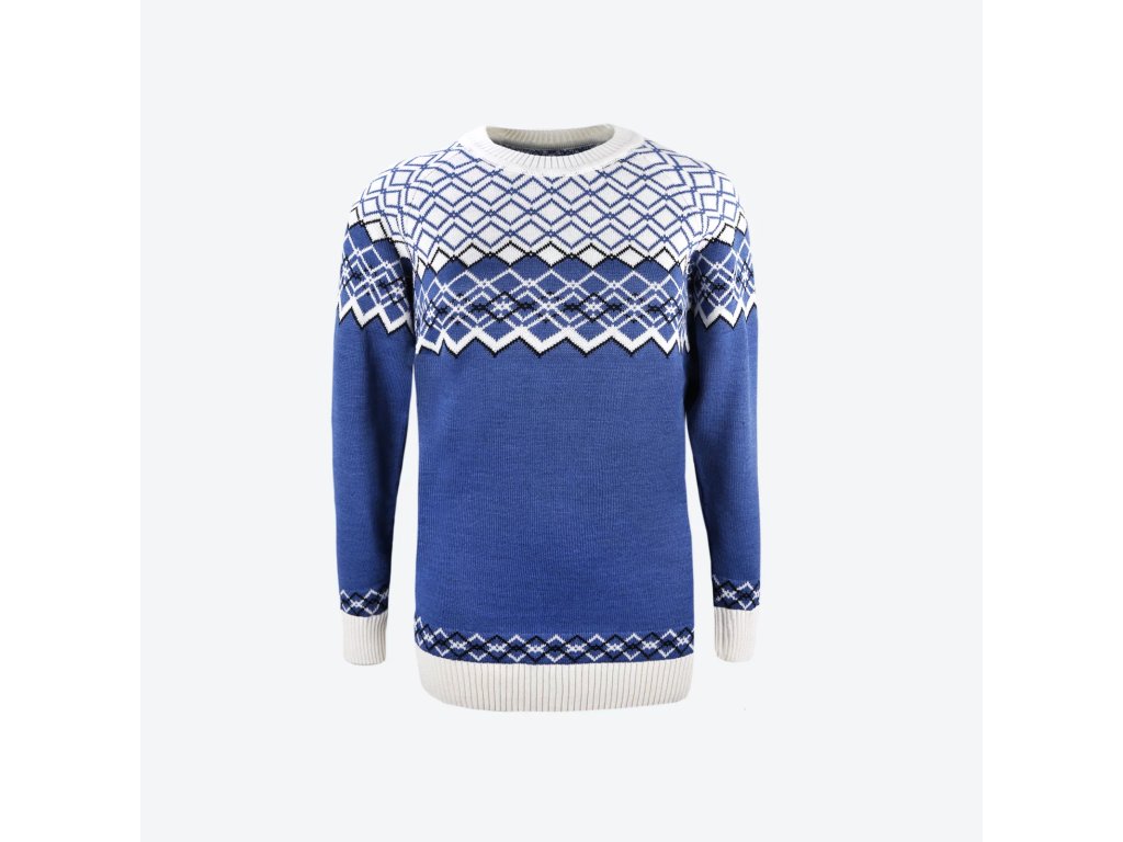 Dámský svetr s nápaditým vzorem a patenty v kontrastním odstínu si oblíbíte nejen díky jeho vzhledu, ale také kvůli příjemnému materiálu a střihu. Tělo má prodlouženou délku . Svetr je vhodný do chladného počasí jak ve městě, tak na horách.